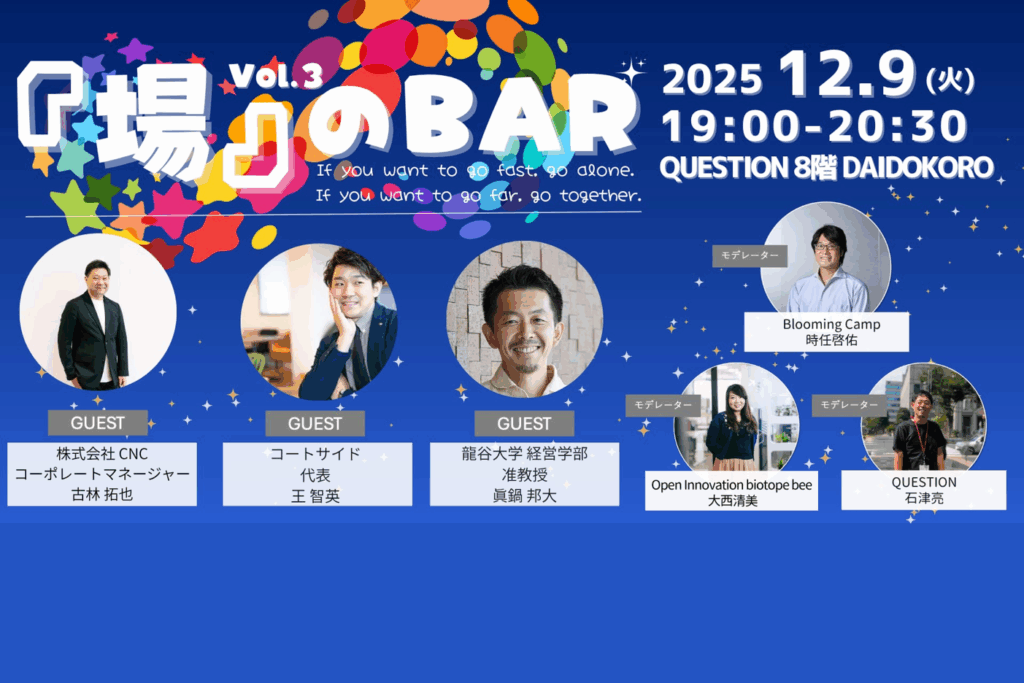 大阪・京都・神戸とそれぞれの魅力溢れる三都が隣接し、商業の街でもありながら古くからの伝統・文化の根付く関西の地から、ミツバチ(=bee)が蜜に集まり仲間と共有するように、様々な人が集まり、自然にリラックスしながら新たなおもしろい発見が生まれる場を目指して共創活動を展開していきます。
